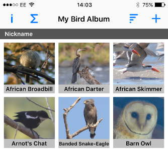Statistics - Gives a count of the number of photographs, number of distinct birds, number of bird families represented, the number of locations photographs have been taken, the date range over which the photographs have been taken and the number of birds in the world bird list.